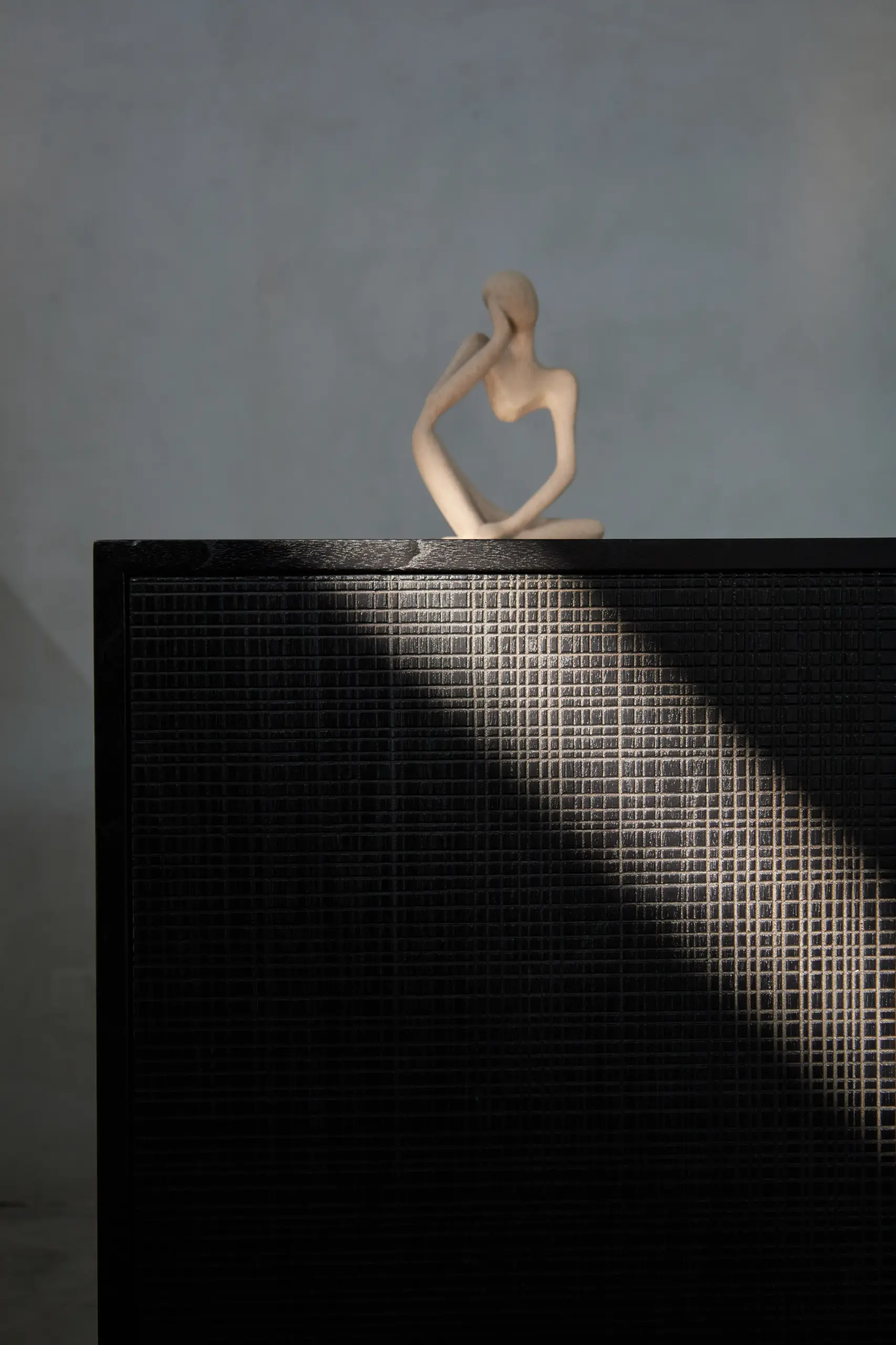 At first glance, the surfaces evoke the depth and texture of slate or mineral stone. But take a closer look: BUAJA is entirely crafted from wood and turned into something almost geological through exceptional craftsmanship.